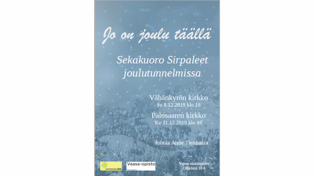 - Jo on Joulu täällä – Sekakuoro Sirpaleet Jouolutunnelmissa | Vaasa.